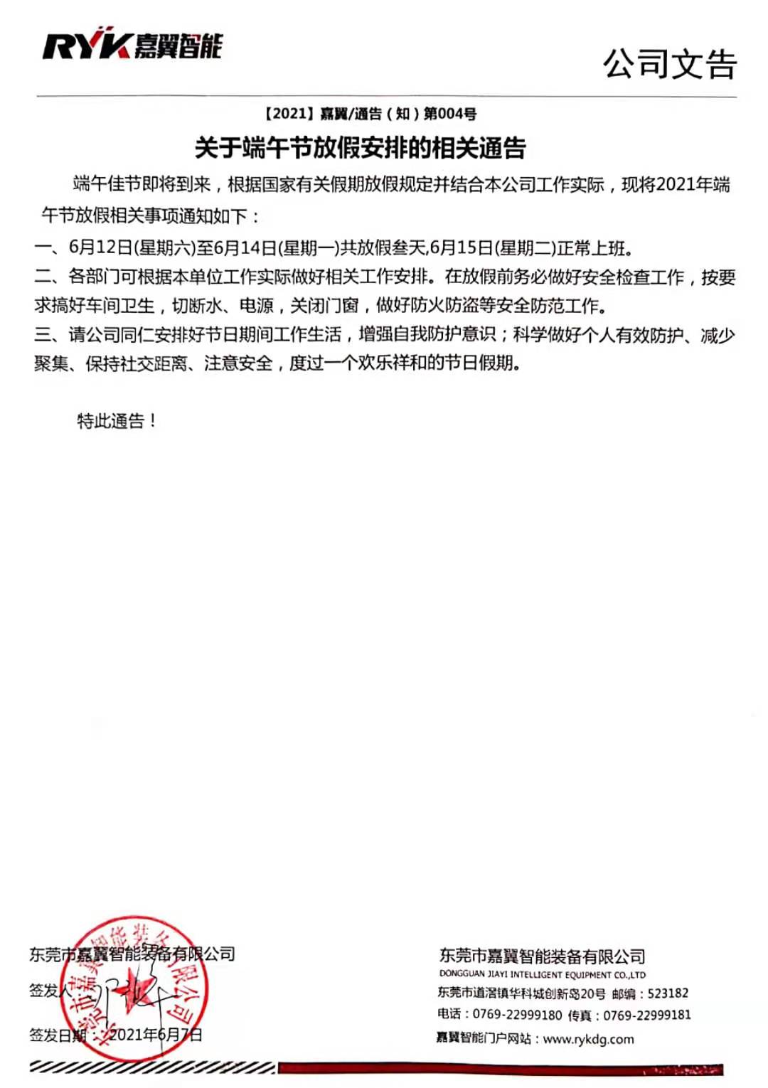 端午佳节即将到来,根据国家有关假期放假规定并结合本公司工作实际情况,现将2021年端午节放假相关事项通知如下:一、6月12日-6月15日